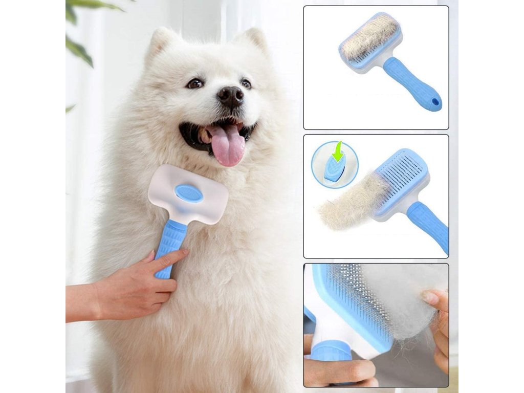 - SAMOČISTÍCÍ - kartáč je samočistící, díky pohodlnému tlačítku efektivně a rychle odstraňuje chloupky z jehel. Je to velmi pohodlné řešení při česání zvířete, protože při kartáčování nemusíte vytrhávat chlupy, stačí použít pohodlné tlačítko a chloupky se odstraní samy.