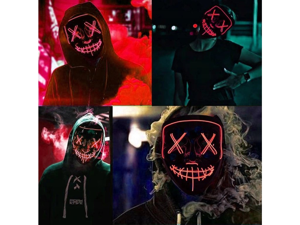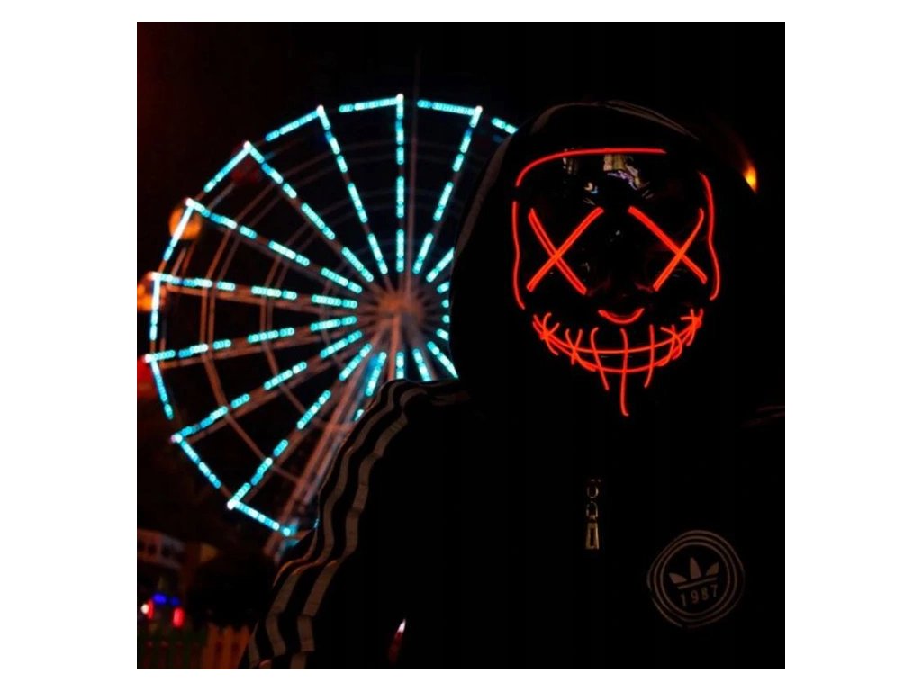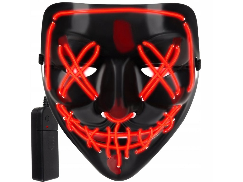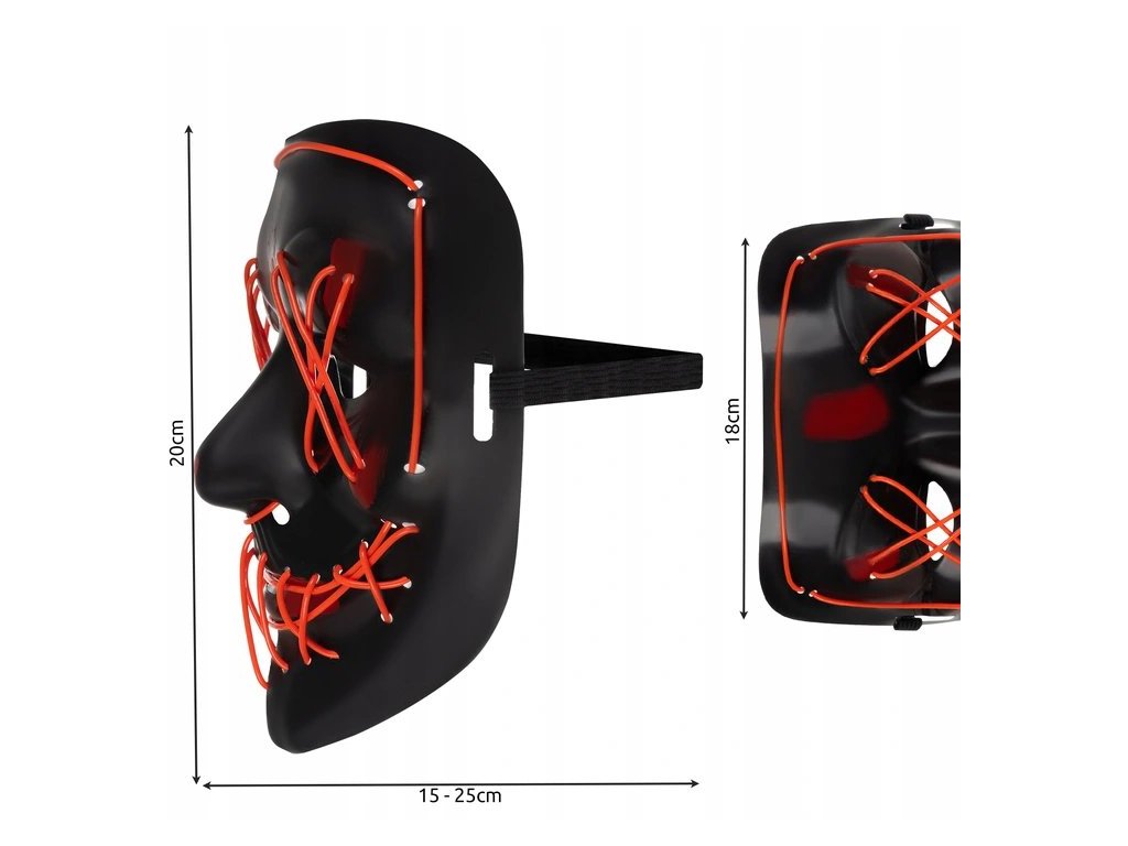 Zazářit můžete o v hororovém kostýmu s naší svítící maskou! Maska nejvíce vynikne ve tmě, protože funguje na bázi LED světla. Strašidelná je i samotná maska, jelikož má po sobě červené skvrny, které vypadají jako krev. V horní části masky se nachází pěnový polštářek, nemusíte se tedy bát, že Vám maska otlačí čelo. Na obličeji drží jednoduše pomocí gumy.