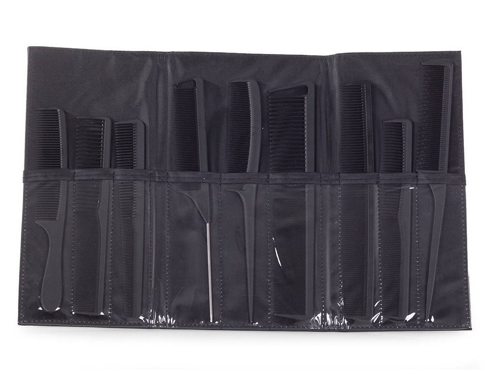 Kompletní sada profesionálních kadeřnických hřebenů.