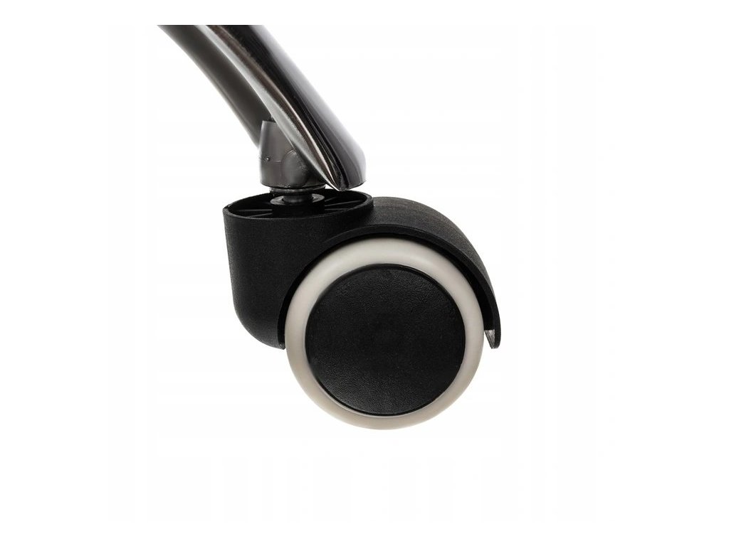 - PRYŽOVÁ KOLEČKA - použití gumových koleček znamená, že podlaha není vystavena poškrábání a koberec zůstává neporušený. To také vylučuje použití neskladných vycpávek , které není snadné udržovat čisté a po nějaké době vypadají nevzhledně. Kola zajišťují bezpečnost země a jejich pohyb je tichý a pohodlný . Pětihvězdičkový podstavec z chromované oceli s dvojitými kolečky zajišťuje stabilní pohyb a dodává křeslu eleganci.