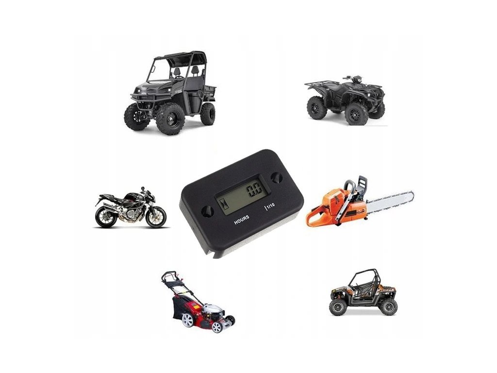 Motohodiny univerzální, přehledně a jednoduše ukazují kolik hodin má Váš stroj najeto, nezbytné pro dodržení správného intervalu servisních prohlídek, použití na dvoutaktní i čtyřtaktní benzínové motory.