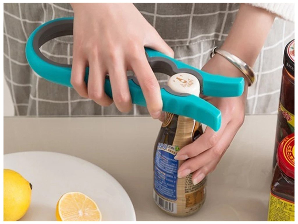 Tento univerzální otvírák na sklenice a láhve je vysoce kompaktní a snadno použitelná kuchyňská pomůcka, která byla chytře navržena pro uživatele se slabou nebo omezenou obratností, aby jim umožnila otevírat víčka na nejrůznějších nádobách a lahvích.