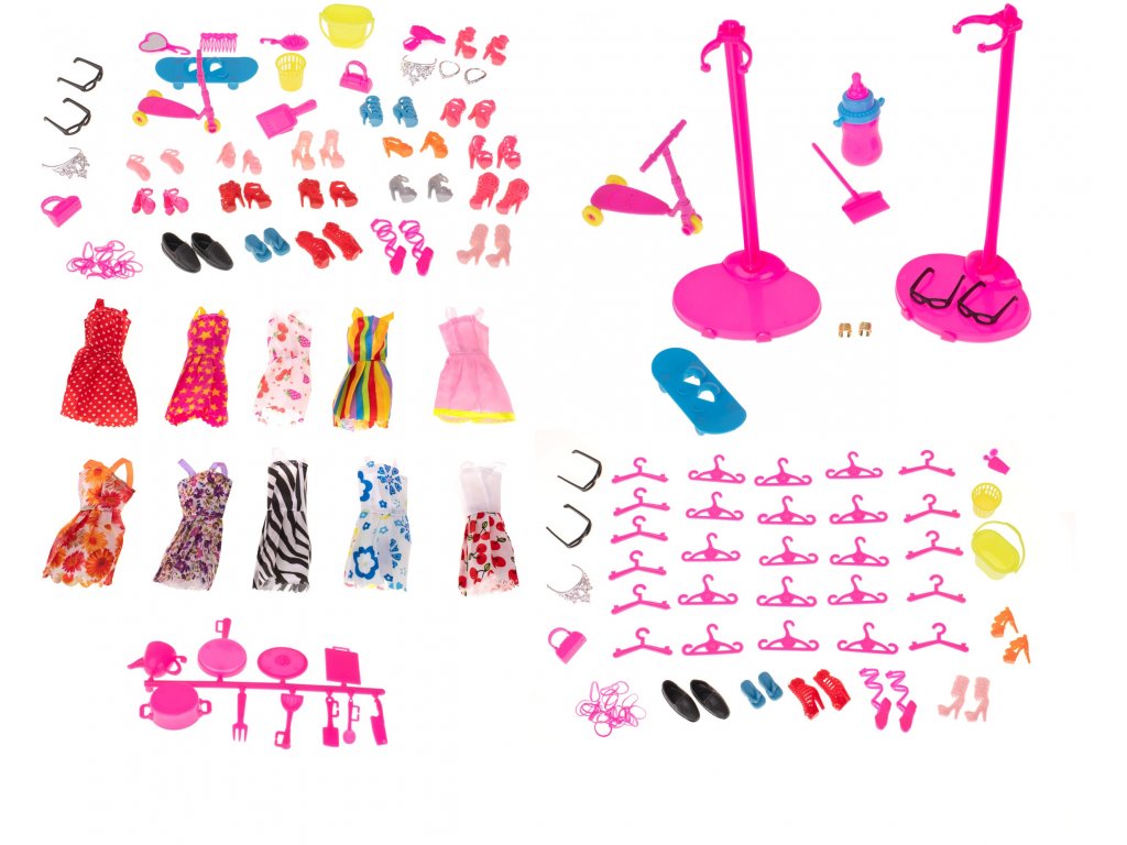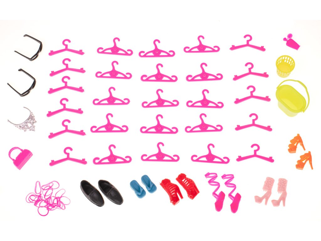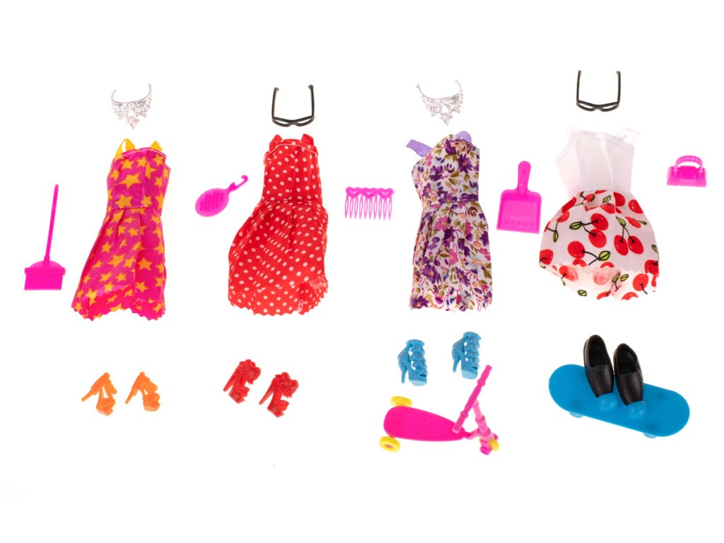 Šaty se budou na panence jenom vyjímat. V sadě naleznete šaty všech barev, tvarů, střihů pro všechny příležitosti. Ať už chce vaše dcera vzít panenku na ples nebo piknik sada ji poskytne dostatek možností. Veškeré příslušenství je vyrobeno z kvalitní tkaniny nebo tvrdého plastu, tak aby si dítě mohlo nerušeně hrát a nebát se poničení. Sada nabídne všechno co si může Barbie přát. Naleznete zde střevíčky na večerní bály, boty do společnosti, ramínka, brýle, kabelky, nádobí a další.