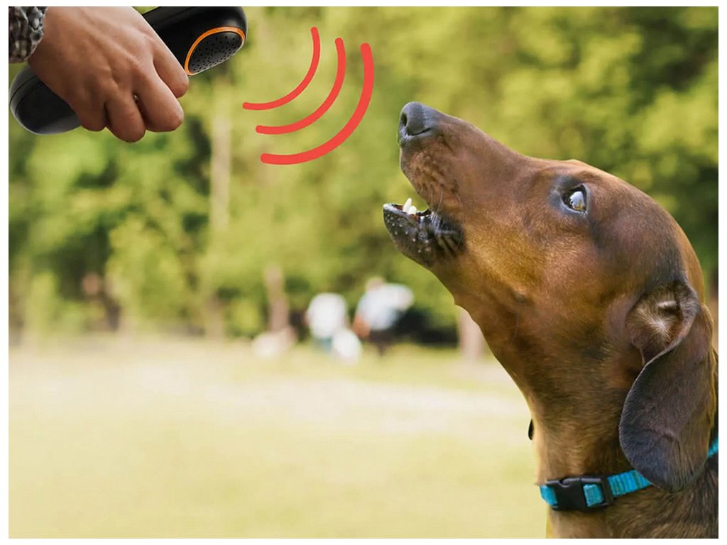 Zařízení pro psy na uklidnění vytrvalého štěkání. Po detekci štěkání zařízení automaticky vydává vysoké zvuky neslyšitelné pro lidské ucho, ale dráždivé pro psy.