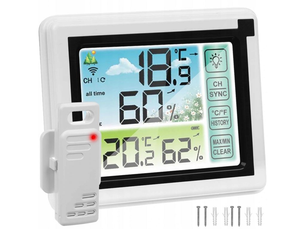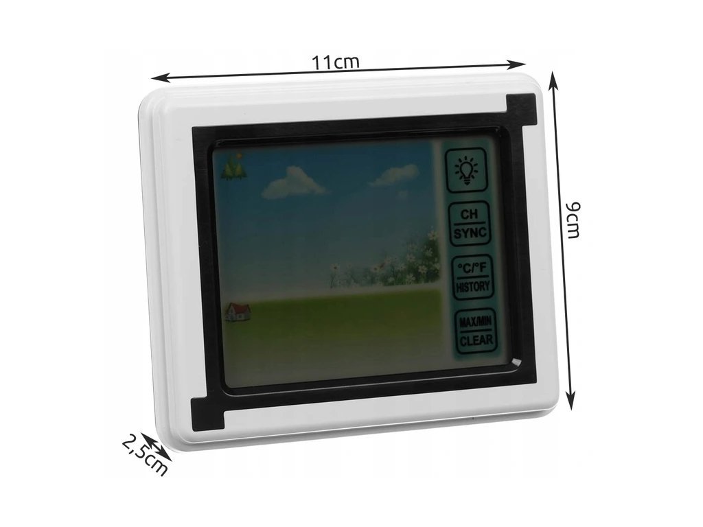 Moderní bezdrátová barevná meteostanice. Meteorologická stanice má mnoho užitečných funkcí - umožňuje mimo jiné měřit maximální a minimální teplotu, vnitřní a venkovní teplotu ve ° C / ° F a také měřit vlhkost vzduchu v%.