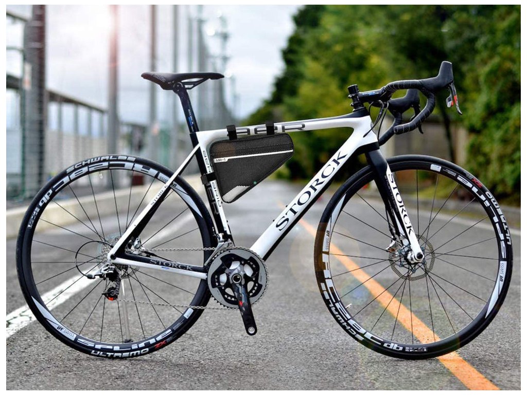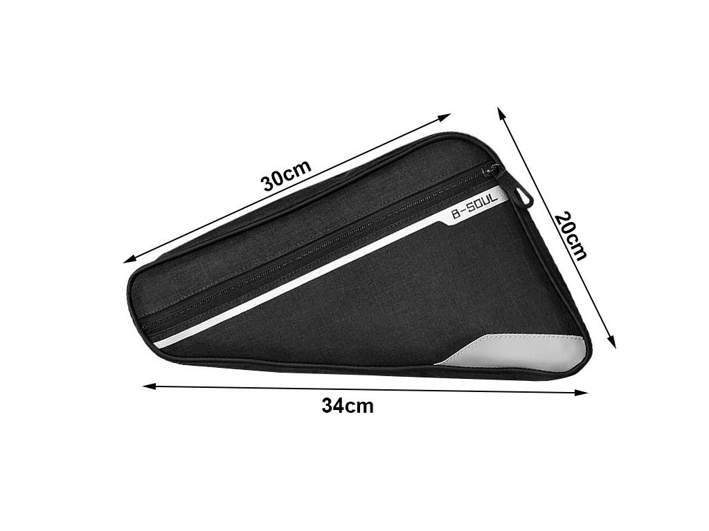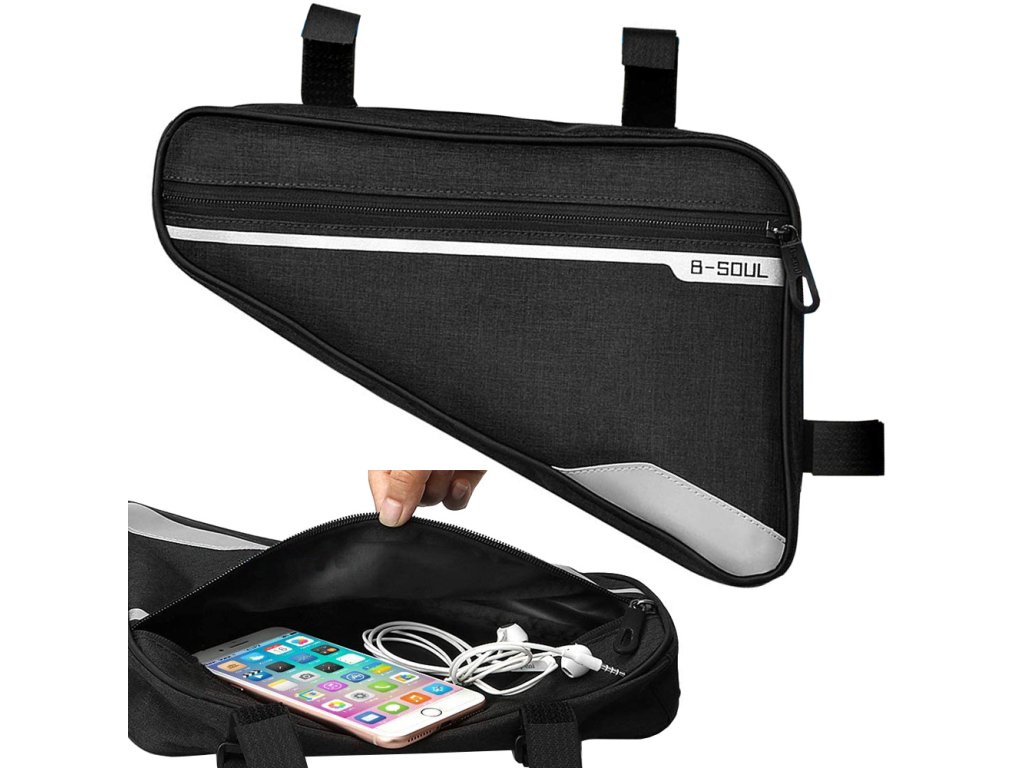 Cyklistická brašna do rámu kola, nenahraditelná během krátkých i dlouhých cyklistických výletů. Je vybavena jednou velkou kapsou na zip a jednou menší síťovanou kapsou. Brašna je lemována reflexním pruhem pro větší bezpečnost při cestování. Upevňuje se pomocí tří suchých zipů a její poloha a rozměry nijak nenarušují jízdu.