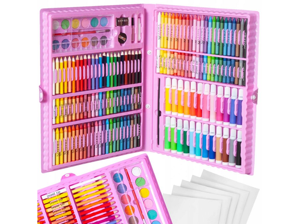 - PRAKTICKÝ KUFR - celek je umístěn v kufru, díky kterému je přeprava celého obsahu jednoduchá a pohodlná ; navíc má rukojeť pro pohodlné přenášení. Kufr můžete také naplnit vlastními novými doplňky .Snadno si ho také můžete vzít s sebou například do školy, na zahradu nebo na soukromé hodiny malování.